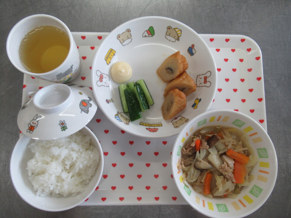 ご飯 八宝菜 ごぼう天の煮物 スティックきゅうり